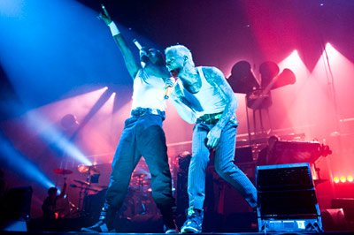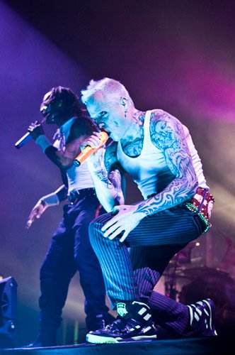 Despite The Prodigy arrived in the Hungarian capital few hours before taking to the stage, front men, Keith Flint and Maxim were on their typically energetic and provocative form.