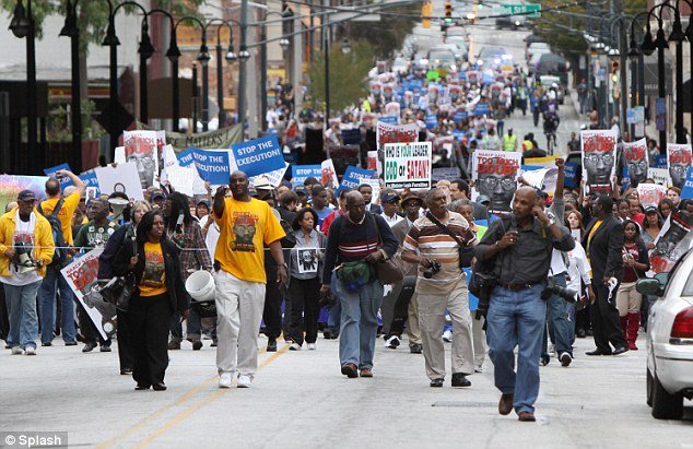 Anti-death penalty activists, who claim Troy Davis was wrongly convicted, chanted and held banners through Atlanta last week.