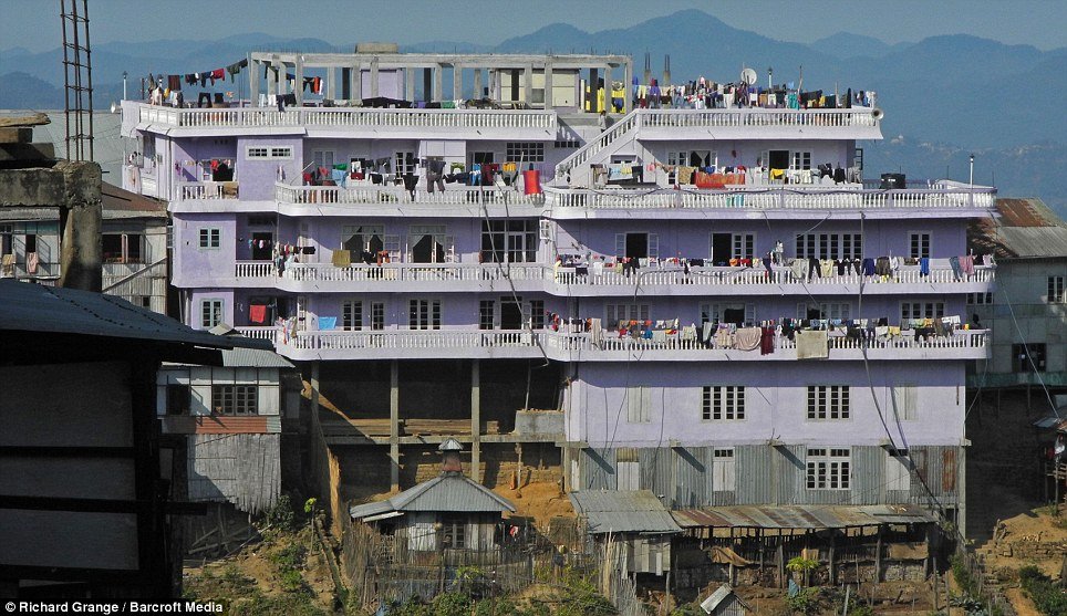 Their home is a four-storey house set in the village of Baktwang, state Mizoram, India. Even then, some of his wives sleep top-to-tail in communal dormitories.