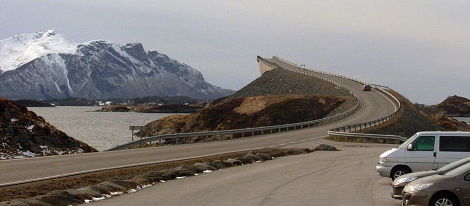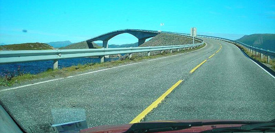 The Storseisundet Bridge sits on the 8 km (5 miles) long Atlantic Road which has become hugely popular with tourists.