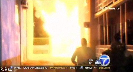 Firemen in Los Angeles, California, were scrambling to put out the fires that lit up parked cars and then spread to nearby homes and flats.