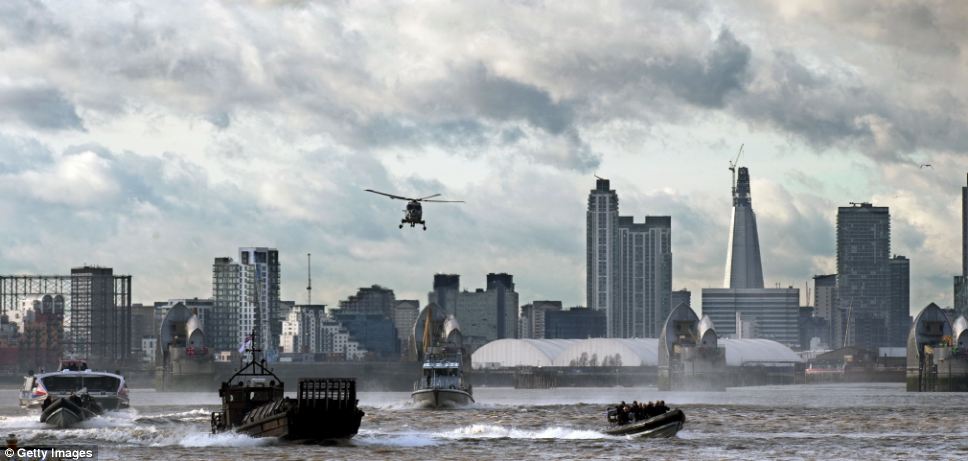 Around 100 marines and 50 officers rehearsed a string of high-speed drills amid fears attackers could use the waterways to launch onslaughts on London landmarks.