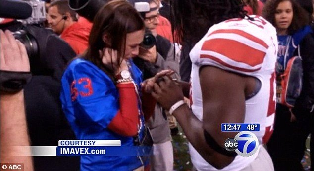 During the on-field celebrations right after New York Giants won the Super Bowl against the New England Patriots, linebacker Greg Jones got down on bended knee and proposed to his girlfriend Amanda Piechowski amid the confetti and the rapturous screaming and cheering from fans.