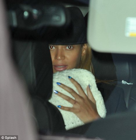 She climbed into the back of the large SUV and was seen cradling Blue Ivy tenderly.