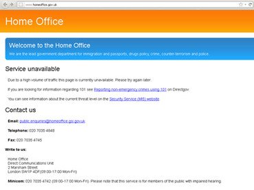 A message on the Home Office website said the page was currently unavailable “due to a high volume of traffic”, suggesting a denial of service attack had been perpetrated.