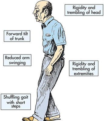 Most cases appear after the age of 50 and the symptoms include shaking, rigidity, slowness of movement and difficulty with walking in the early stages. In the advanced stages cognitive and behavioral problems may appear, including dementia. Other symptoms include sensory, sleep and emotional problems. Dopaminergic cells, brain cells that produce dopamine, a substance involved in controlling muscle movement, are slowly destroyed, and dopamine level drops dramatically.