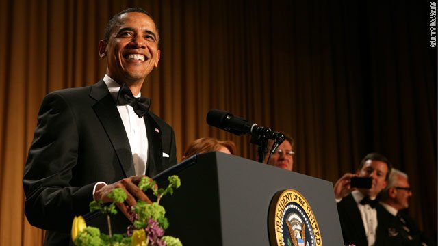 Barack Obama enjoyed a genial evening with the members of the press, thanking them for their time and dedication.