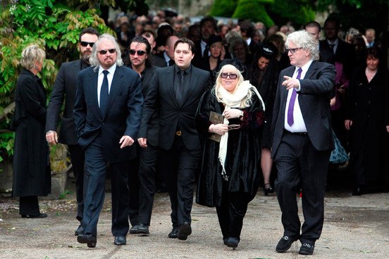 The coffin itself was draped with the flag of the Isle of Man, where all three Bee Gees were born.
