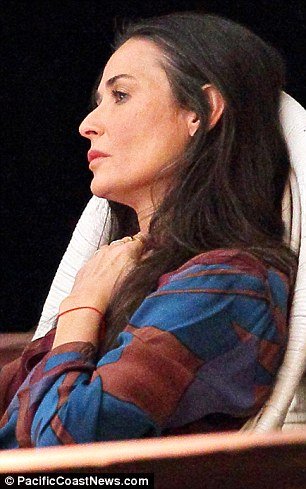 Demi Moore put her head to her hands and appeared deep in her own thoughts as she took a break in between takes for the film, which also stars Dakota Fanning and Elizabeth Olsen.