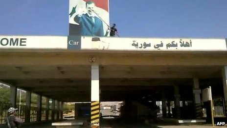 Video from the Bab al-Hawa crossing in Idlib province soon emerged of rebels defacing a portrait of President Assad, but they later reportedly withdrew from the position.