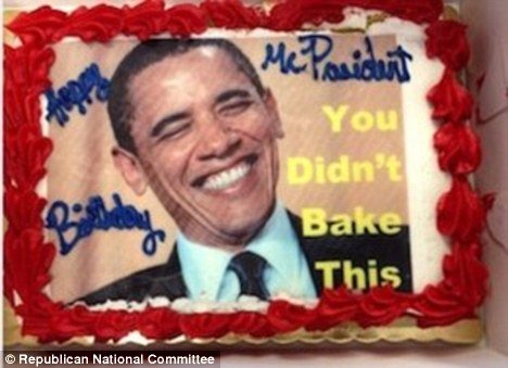 But, before Barack Obama escaped to begin any celebrations, Republicans acknowledged his birthday by delivering him a tongue-in-cheek cake.