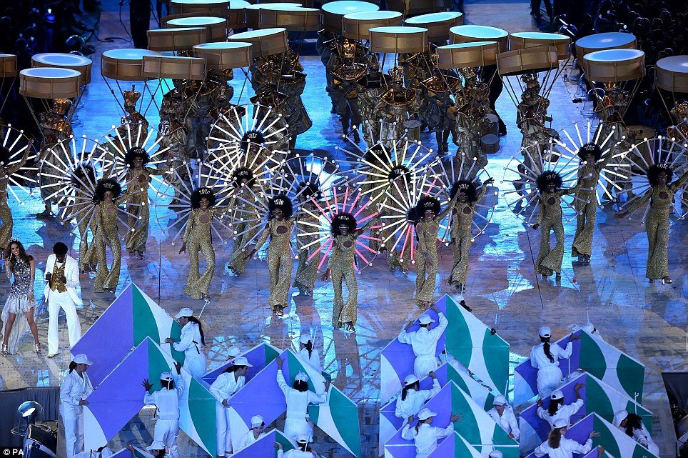 Brazilian carnival dancers invaded the stage in the final section of the closing ceremony last night to symbolize the handover from London 2012 to Rio 2016.