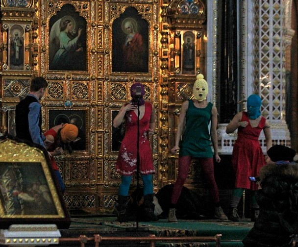 Maria Alyokhina, Nadezhda Tolokonnikova and Yekaterina Samutsevich were found guilty of “hooliganism motivated by religious hatred” and jailed for two years.