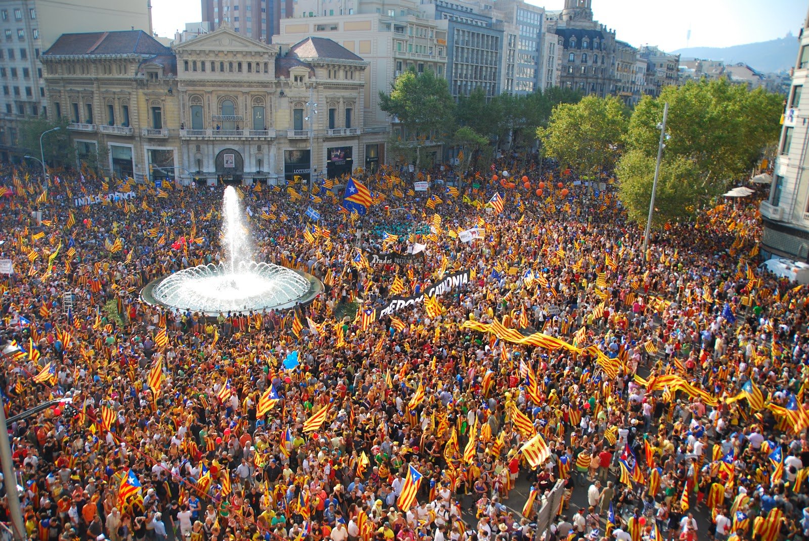 The size of the turnout for the rally, which is held annually on 11 September to mark the Siege of Barcelona 300 years ago, forced organizers to change its route.