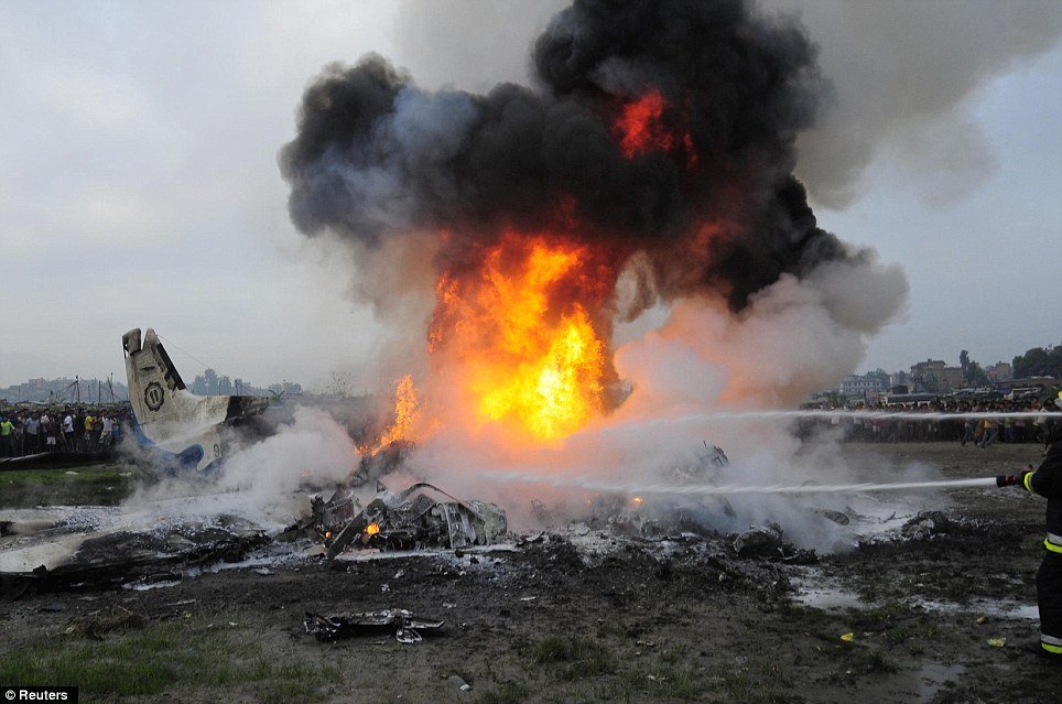 The plane, operated by Sita Air, came down minutes after take-off from Kathmandu. Officials said it crashed into a river bank and caught fire.