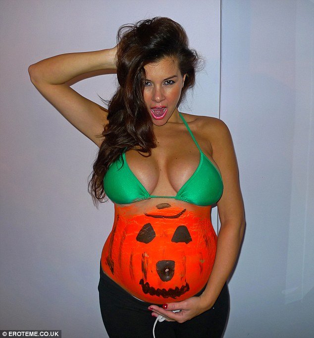 With the help of a friend, Imogen Thomas daubed her stomach in bright orange paint and added a scary face, mimicking a traditional Halloween pumpkin.