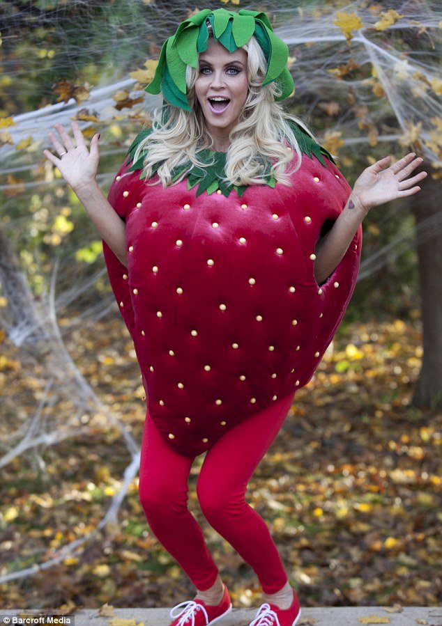 Jenny McCarthy slipped herself into a voluminous strawberry costume for a Halloween carnival on Monday night.