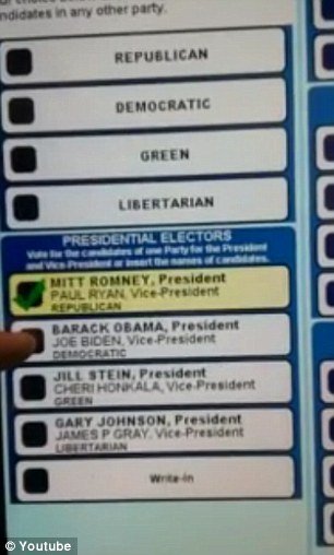 A vote for any other of the candidates for the presidency and vice presidency resulted in a successful choice – it was only a vote for Barack Obama that caused the machine to change to Mitt Romney.