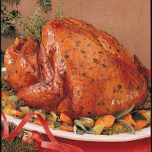 This turkey is roasted with a mixture of herbs and olive oil under the skin and all over the bird.
