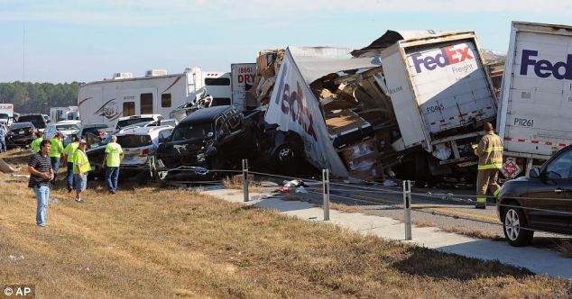 The highway had been crowded with motorists traveling during the Thanksgiving holiday. Many of the vehicles were moving close to the posted speed of 70 mph despite dense fog that limited visibility, Rod Carroll said.