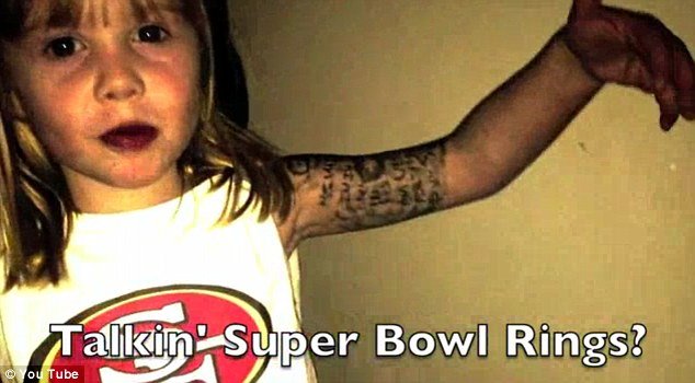 In the recording the blonde youngster is seen imitating the San Francisco 49ers quarterback dressed in a number 7 shirt with faux tattoos covering her upper arms.