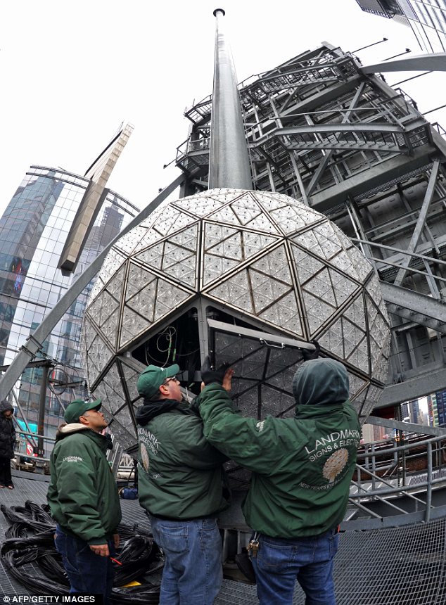 Workers installed 288 new crystals onto the 6ft tall sphere that represents this year’s theme of peace.