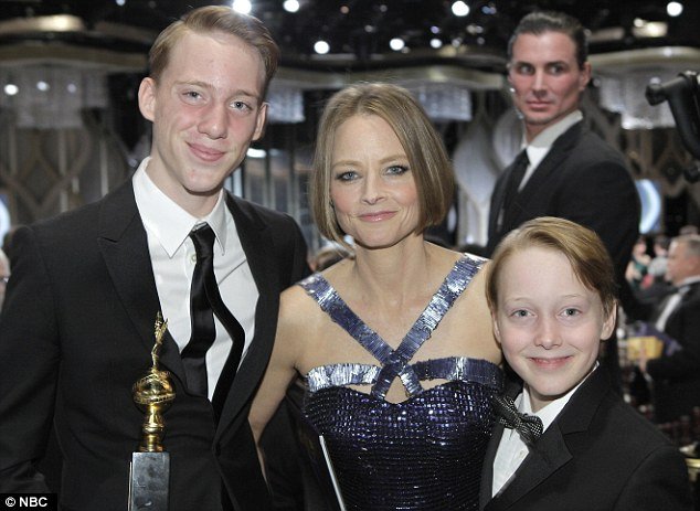 Jodie Foster spoke out while accepting the Cecil B DeMille Award for lifetime achievement at the awards ceremony in Los Angeles, while her boys and Cydney, 59, looked on.
