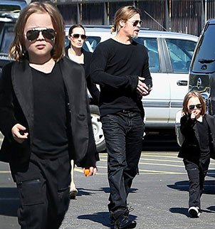 With golden shoulder length hair, a sophisticated black suit and aviator sunglasses, Knox Jolie-Pitt appears to be the spitting image of his famous father, Brad Pitt.