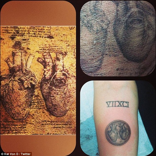Celebrity tattoo artist Kat Von D did the inking, tweeting the results on her Twitter page.