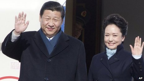 Xi Jinping’s wife, well-known military singer Peng Liyuan, is with him on this trip.