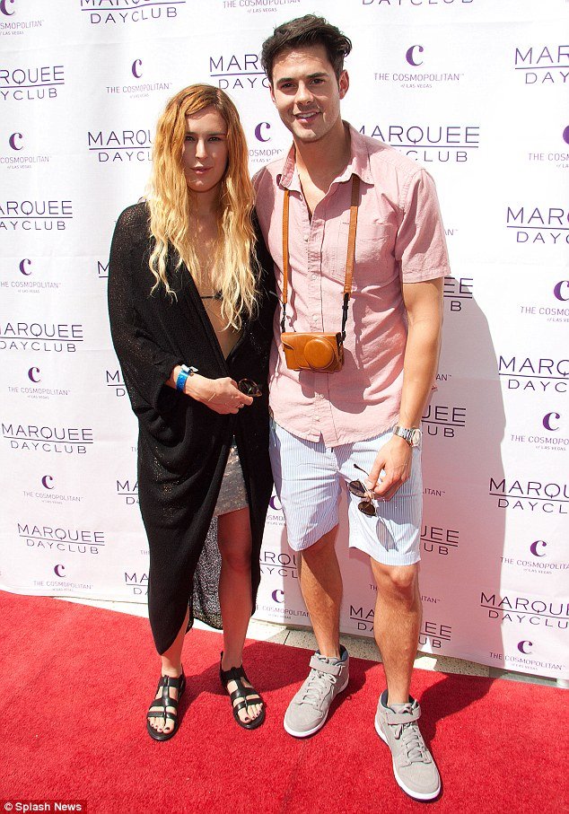 Jayson Blair, who stars in the NBC sitcom The New Normal, looked a bit less ready for a dip in a pink short-sleeved top, blue seersucker shorts and grey high top trainers.