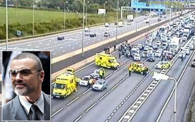 An ambulance crew was so concerned at the singer’s condition that a helicopter was summoned, and the motorway was closed for half an hour while it landed to take George Michael away.
