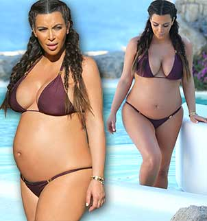 As she proudly showed off her bump in a simple bikini Kim Kardashian proved she is finally at ease with her new shape.