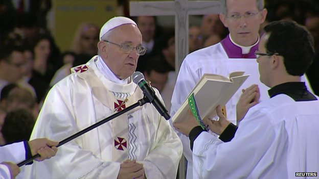 He is in Brazil to attend the Roman Catholic World Youth Day festival. It is his first trip abroad since becoming head of the Catholic Church in March.