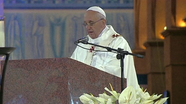 The pontiff is in Brazil to attend the Roman Catholic World Youth Day festival. It is his first trip abroad since becoming head of the Catholic Church in March.