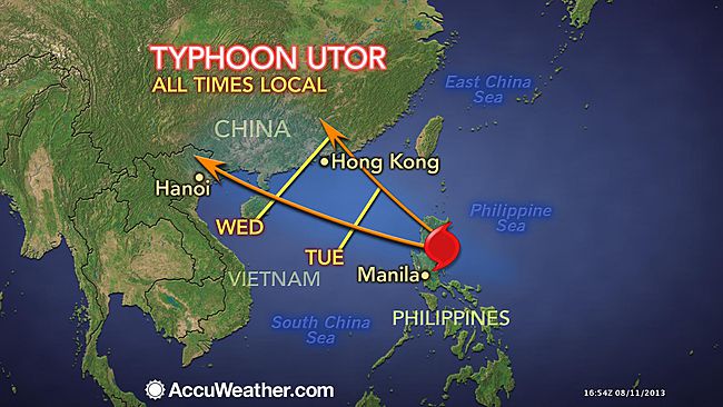 Typhoon Utor is expected to remain in the northern Philippines for most of Monday before sweeping out to sea.