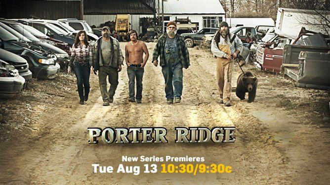 Porter Ridge has the same problem most shows in this genre have: Everyone’s trying too hard. The show looks in on a backwoods microcosm in Indiana. Terry Porter, who seems to own no shirts, runs an auto junkyard.