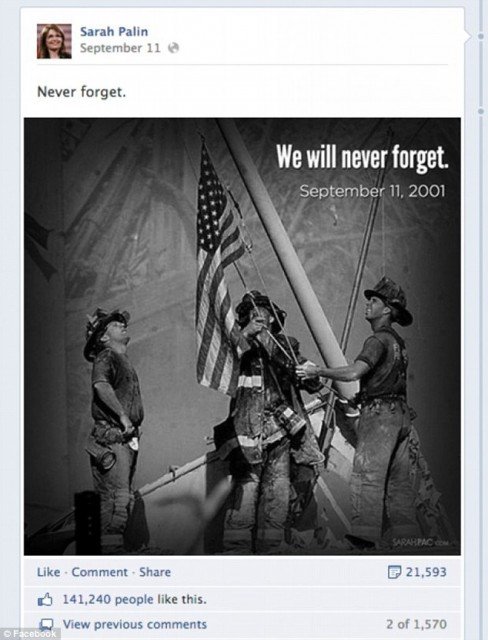 The photo was pulled from Sarah Palin’s Facebook page Friday, according to The Alaska Dispatch.