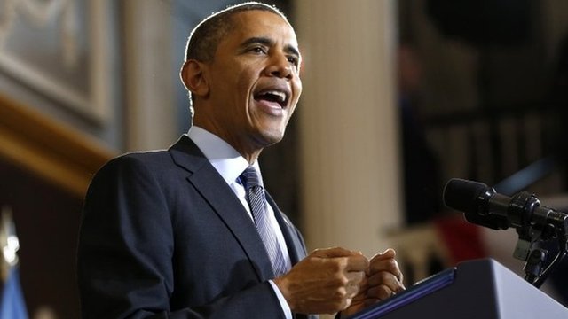 Barack Obama spoke at Faneuil Hall in Boston, Massachusetts, a state that in 2006 introduced a groundbreaking healthcare law that inspired the Obama administration’s own nationwide overhaul.