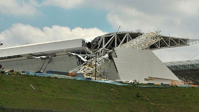 TV footage showed the huge metal structure buckled on top of the stadium, which is also known as Itaquerao.