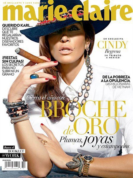 Cindy Crawford channels late screen siren Maria Felix on the cover of the upcoming issue of Marie Claire Mexico.