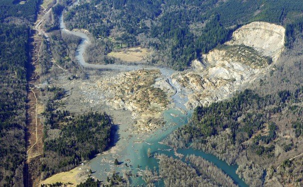 The sudden, catastrophic mudslide on Saturday destroyed about 30 houses, temporarily damming a river and leaving a square-mile field of muck and debris in its wake.