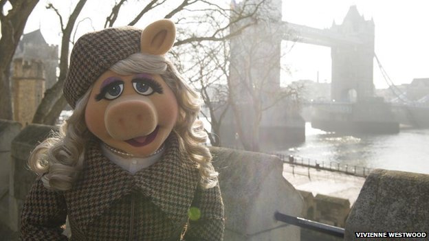 Vivienne Westwood designed the tweed outfit and other costumes Miss Piggy wears in the new Muppets movie, Muppets Most Wanted.