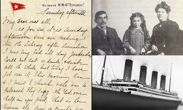 The letter was written by survivors Esther Hart and her 7-year-old daughter Eva eight hours before the ship hit an iceberg and sank in 1912.