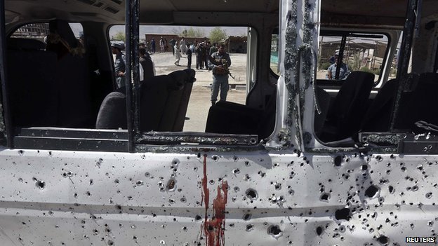 The attack occurred hours after two men working for the media team of outgoing President Hamid Karzai were killed by a roadside bomb in Kabul.