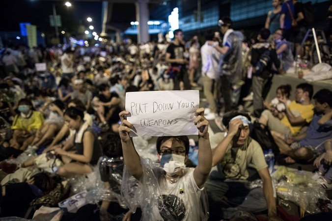 The movement had originally planned to paralyze the central business district on September 24, but organizers brought forward the start of the protest and changed the location in an apparent bid to harness momentum from student protests outside the government complex.