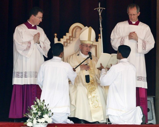Pope Francis urged people to follow the example of 17th Century missionary Joseph Vaz at the service in Colombo.