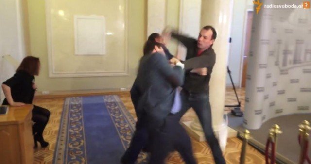 According to Yegor Sobolev, the fight occurred because an anti-corruption bill and harassment of the press.