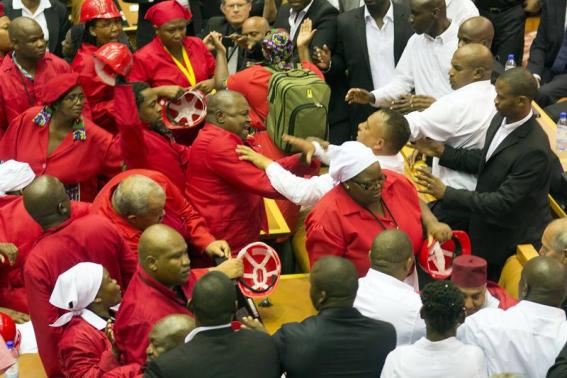 The Economic Freedom Fighters (EFF), led by Julius Malema, repeatedly interrupted Jacob Zuma, demanding answers over a spending scandal.