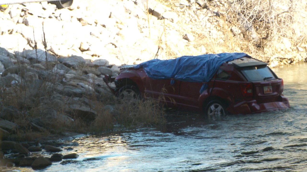 Investigators believe the car fell into the Spanish Fork River after striking a cement barrier at about 22:30 local time on March 6.